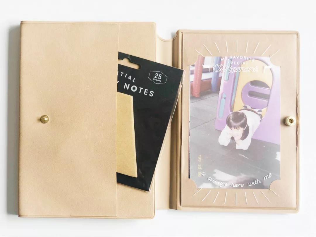 封面开窗内可放入照片,每次翻看手帐都能看到孩子的照片,还可以时常更换照片。