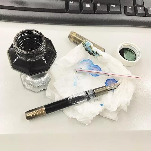 最吸引人的就是中间的“彩墨展示区”啦。钢笔吸墨有三种方法可以选择,可以搭配墨囊使用,也可以搭配吸墨器使用。