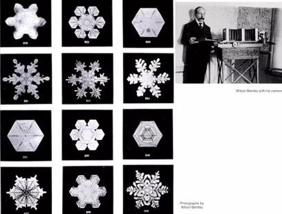 通过观察,他得出一个著名的结论:世上没有两片雪花是相同的(No two snowflakes are alike)。