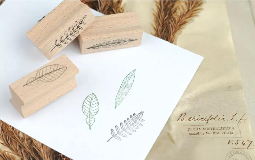 4款标本框印章,边框还原19世纪羽毛笔蘸墨水画出的笔触,满满旧工业时代的复古感。搭配写实画风的树叶印章,手帐秒变树叶图鉴,帮你收藏不同季节的叶子。