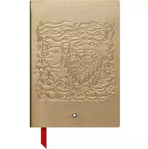 这款精美的笔记本的灵感源自具有韧性而又有耐心的猪,外封面采用金色十字纹皮革手工制作。封面印有金猪图案,是万宝龙书写工具和墨水产品的理想伴侣。内里搭配红色书签,采用金色边缘的纸张。全意大利制造工艺,成就经典而精湛的高端书写伴侣。
