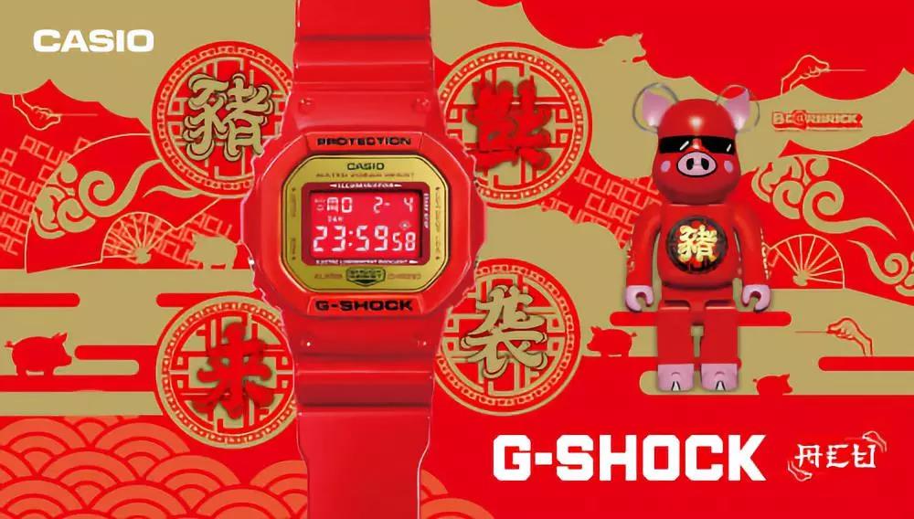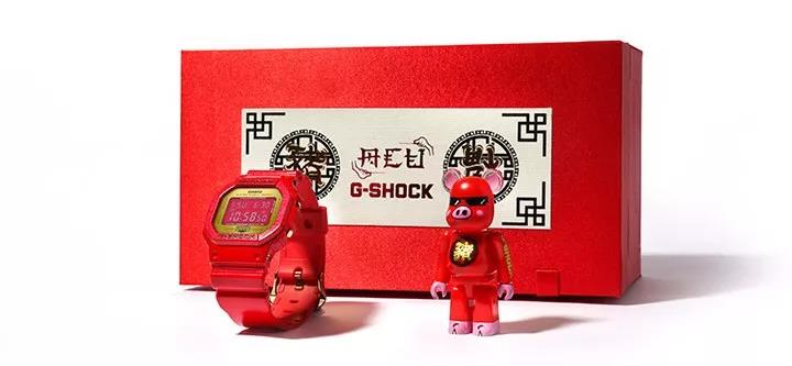 礼盒里搭配风靡全球的潮流玩具Be@rbrick公仔,整体以生肖猪为设计概念,结合潮流元素,创造具有中国新年特色的G-SHOCK腕表。