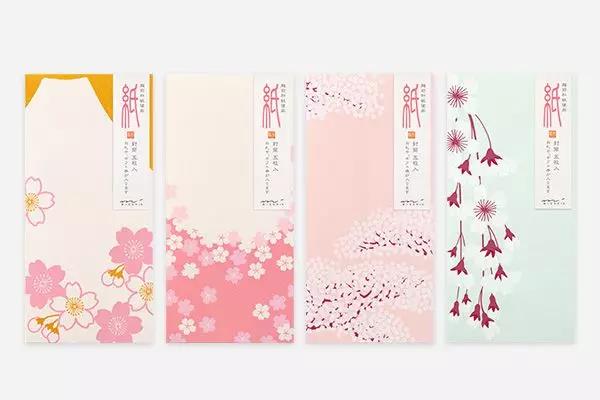 多功能信封袋包括不同图案的四款信封,分别是富士山款、樱小纹款、樱花树款以及垂樱款,每一款都春日感满满。信封内除了可以放信纸,还可以放礼品卡、回礼、小费或找零等。