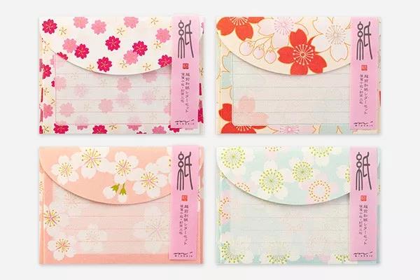 信封信纸套装包括不同图案的四款信封信纸套装,每款内含3枚信封10枚信纸。以和服为灵感打造的信封信纸套装通过印刷表现了布纹的质感。短短几行的信纸是写给朋友或家人的不错选择~