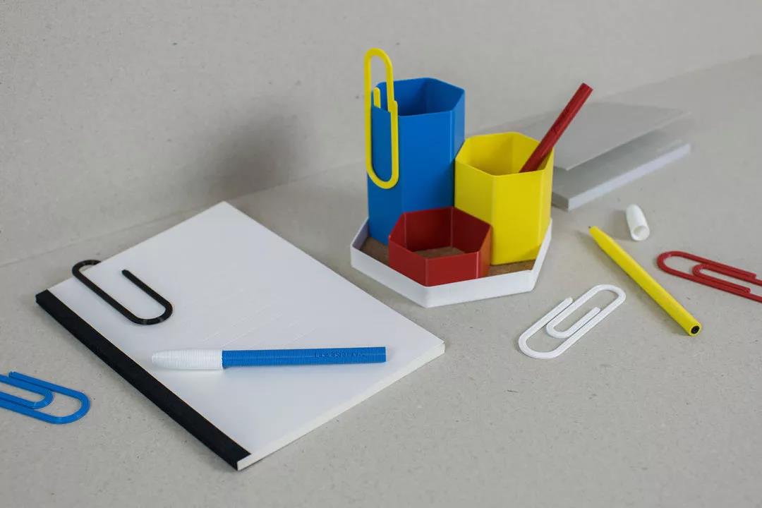 伦敦创业公司 Batch.works 最近与文具品牌 Paperchase 合作,推出了一个 3D 打印的可生物降解文具系列,包括笔筒、圆珠笔和巨型回形针。