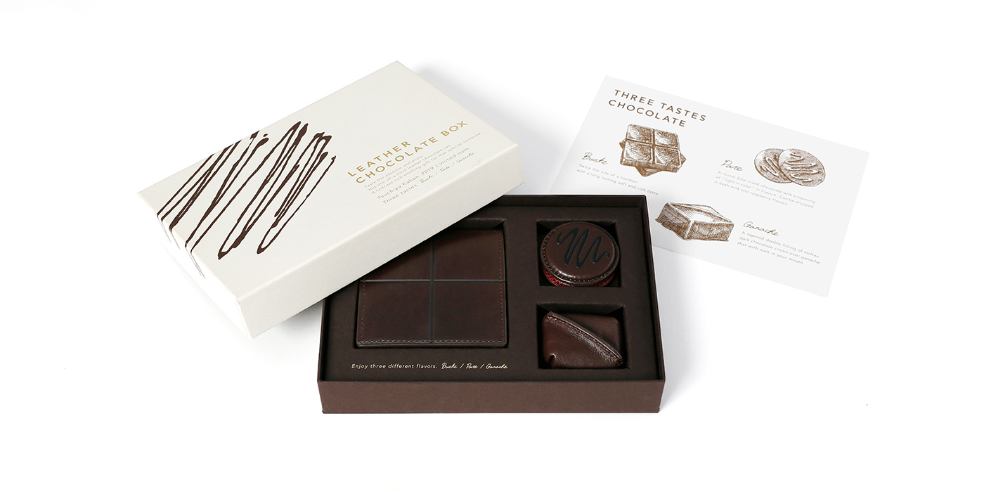 日本皮革品牌土屋鞄制造所别出心裁的以三种皮革,共谱巧克力三重奏,以不同质地的皮革模拟不同风味,层次分明的巧克力,外型精致可爱,外观真实堪比下午茶桌上的食物。让办公生活轻松愉悦,更为工作及阅读增添不少幽默感。