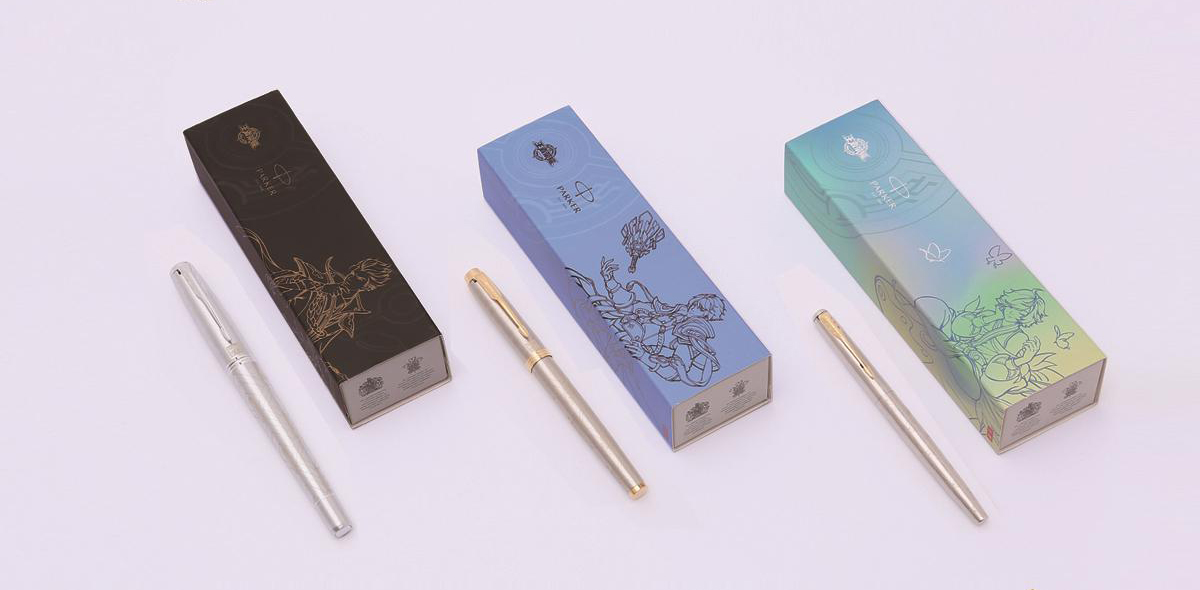全球知名高端书写工具品牌派克与王者荣耀IP展开跨界合作,共同推出联名款定制钢笔。其设计灵感分别来自四位在王者荣耀游戏中具有文人气质的王者英雄,英雄们的代表性元素被应用于钢笔设计中,为钢笔增添时尚、鲜活气息的同时,也承载了更多中国传统文化内涵。
