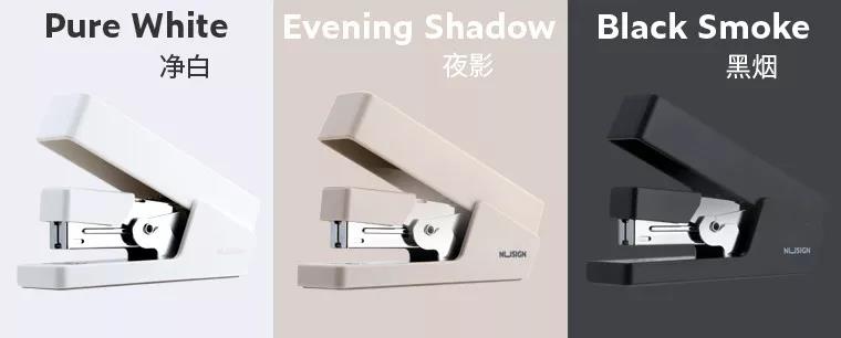 纽赛省力订书机一共三色可选:净白,夜影,黑烟